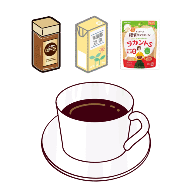 ブラックコーヒーが苦手なら、豆乳とラカントを入れたコーヒーでもOK。